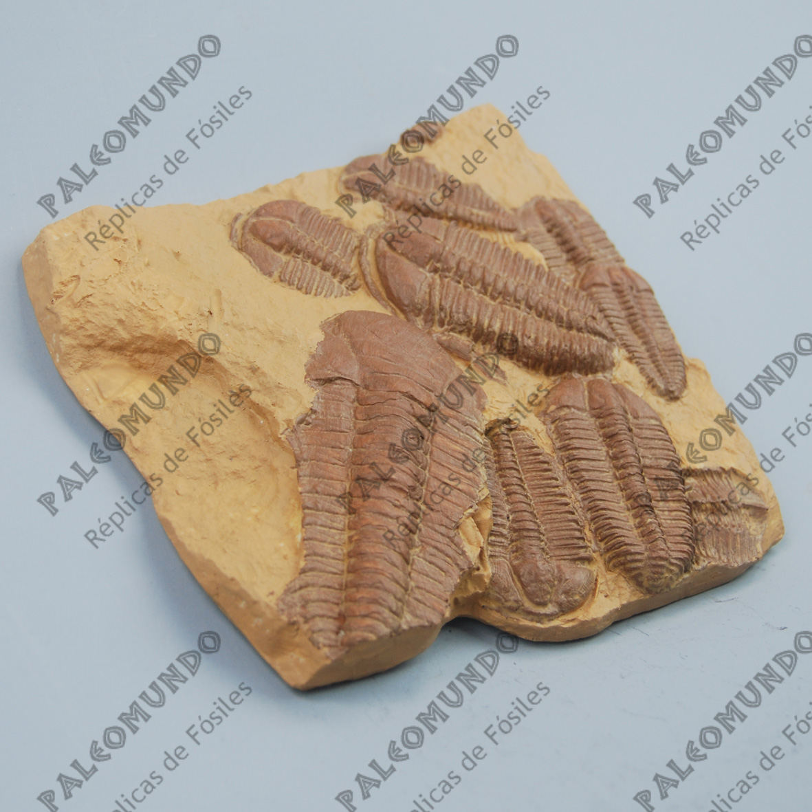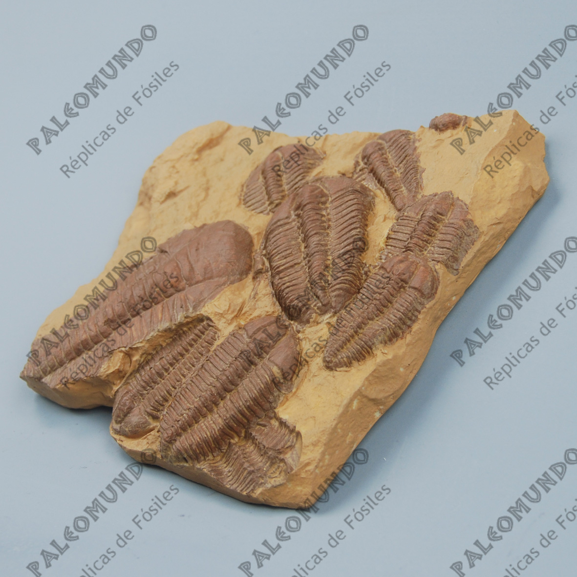 Trilobite hallado en Ginetz en Chequia perteneciente al Cámbrico Medio. La placa también tiene un Paradoxides. Mide 18 x 16,5 centímetros.