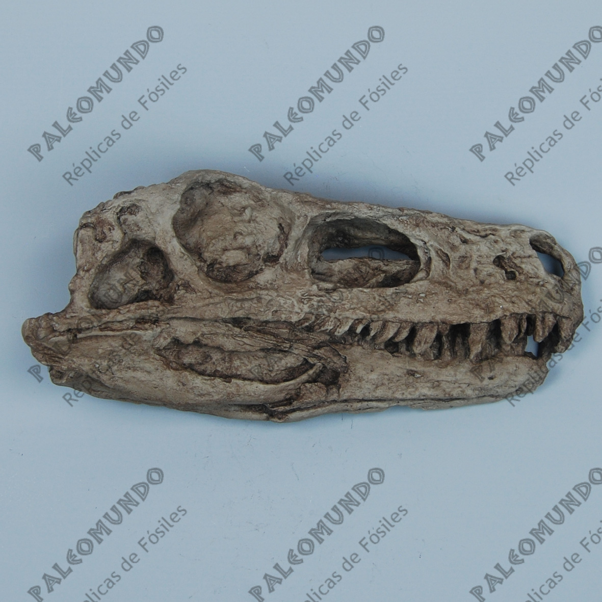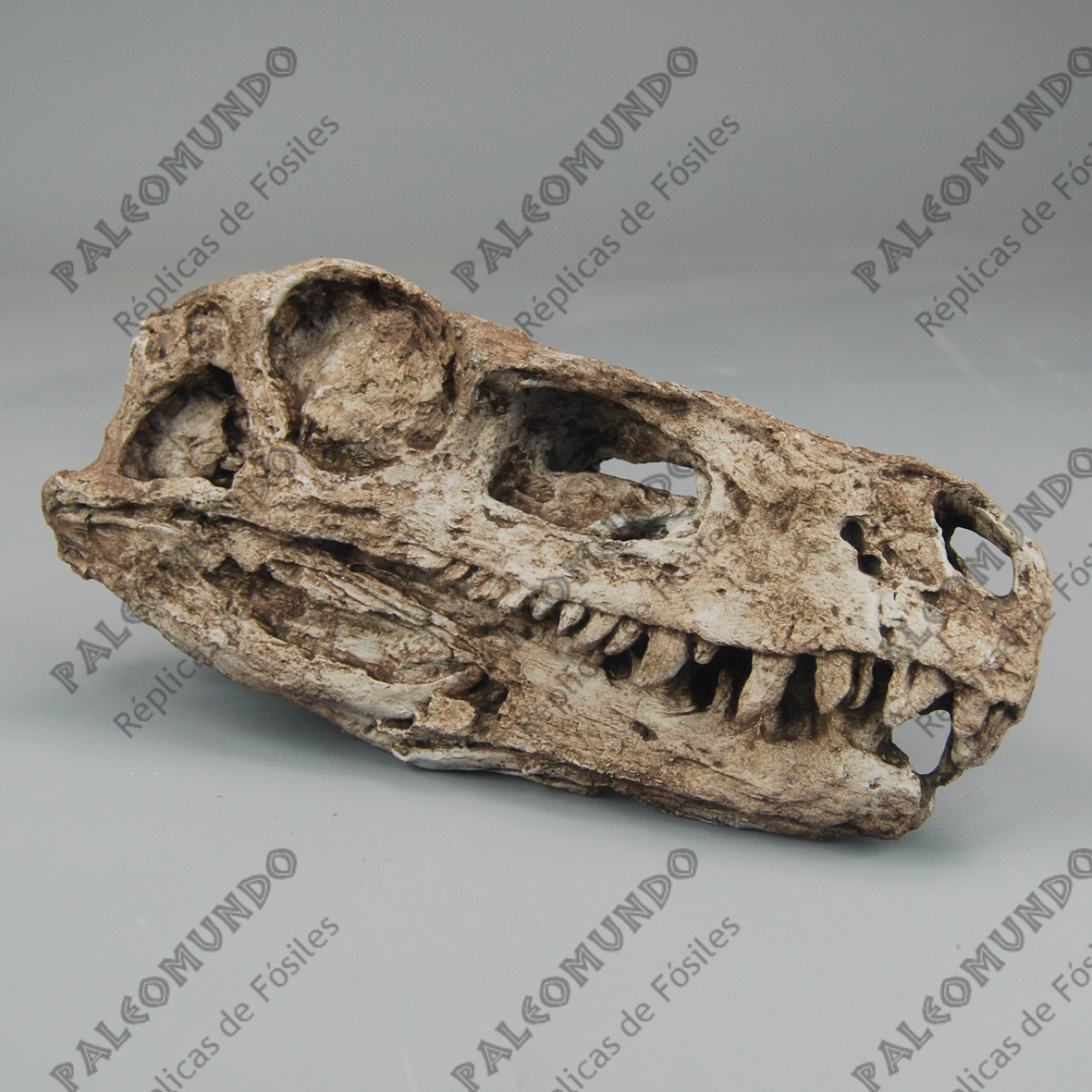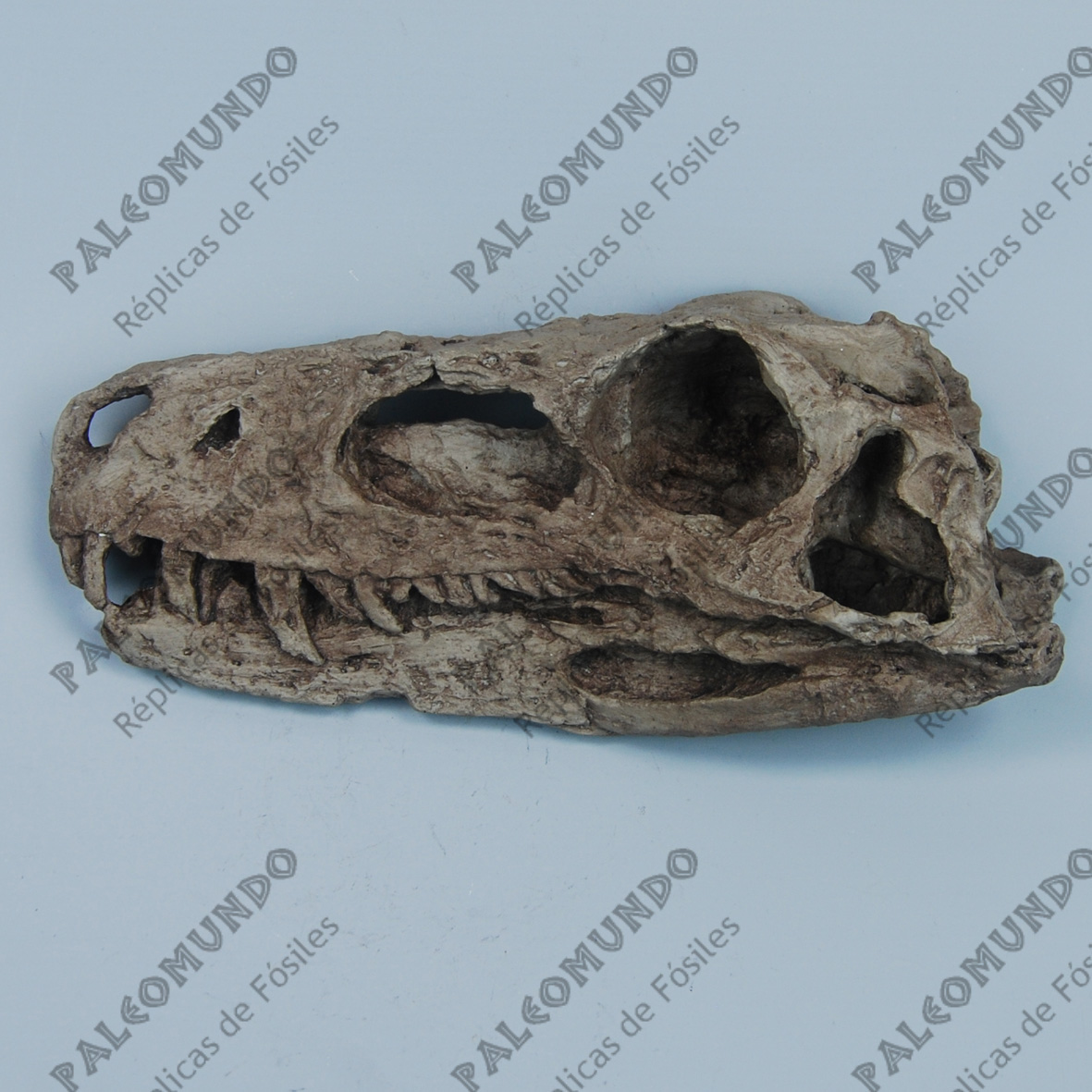 El cráneo tiene unas medidas de 29 cm. largo X 13 cm. de alto x 9 cm. de ancho