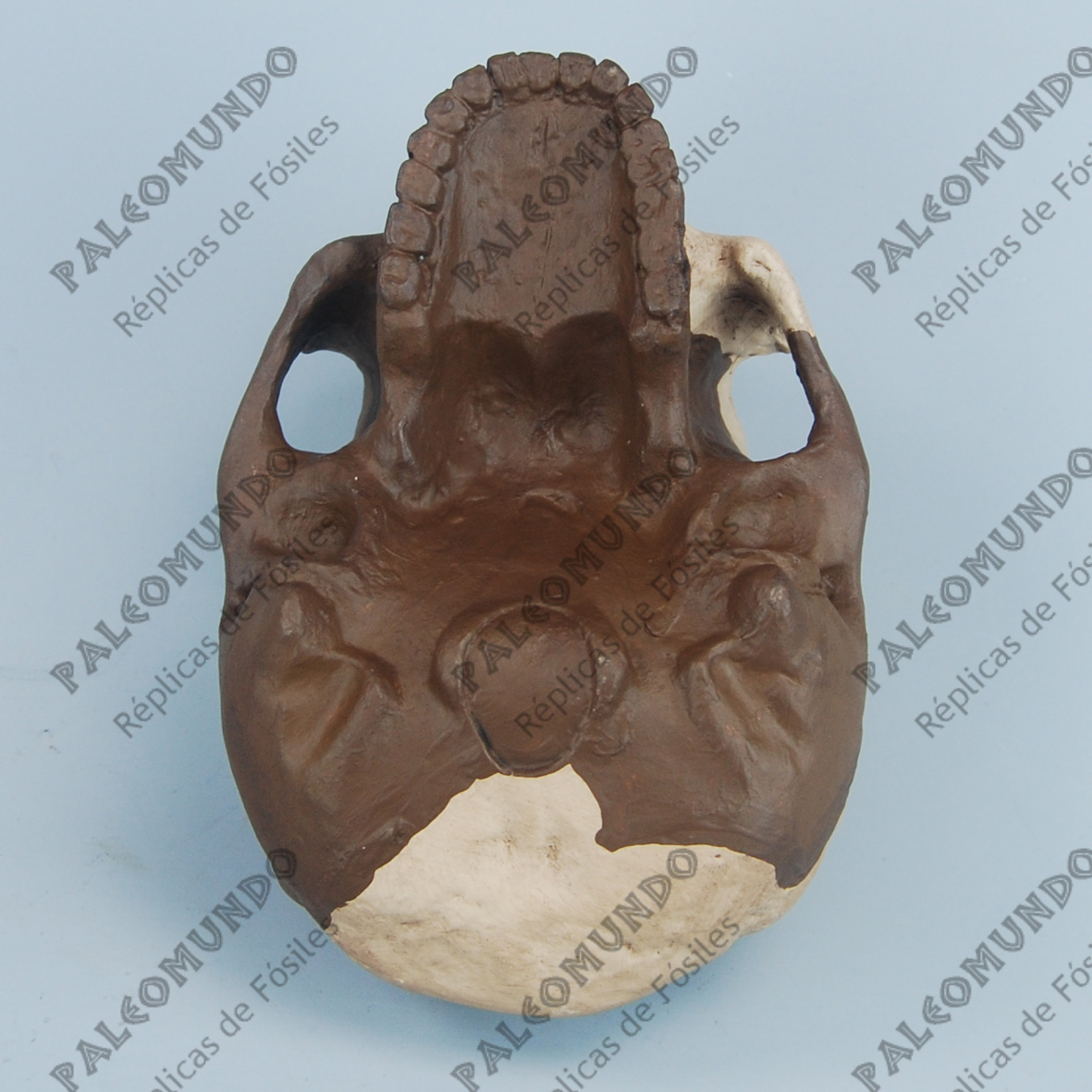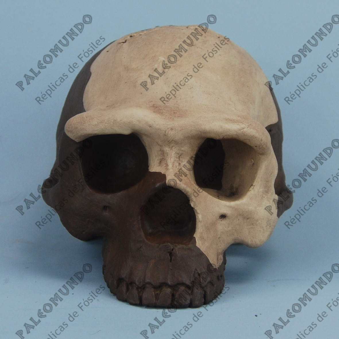 Esta réplica pertenece al ejemplar conocido como Hombre de Nanking ( Nanjing 1) hallado en la cueva de Coloquint, en la provincia de Jiangsu en China y tiene una edad de 615,000 años.